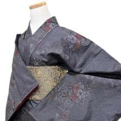W104 着物 袷 小紋 化繊 洗える着物 松葉 紅葉 紫グレー