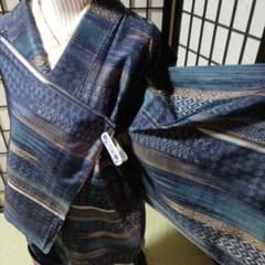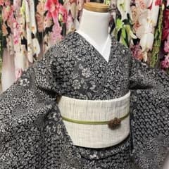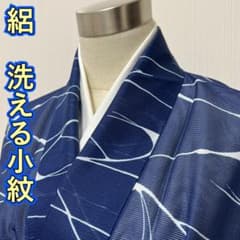美しいお着物 小紋 正絹 ちりめん バチ襟 着丈162 裄丈63