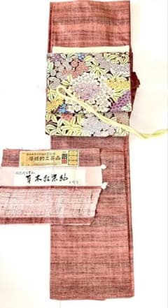 貴重 山形伝統的工芸品 置賜紬 正絹紬 草木紅染め紬 初春茜色 お仕立て上がり