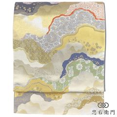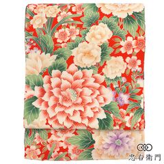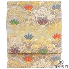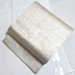 夏帯 袋帯 紗紬 色紙に万寿菊と紅葉 銀糸 鳥の子色 O-3694