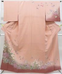 訪問着 蝶々 鉾 地模様 石楠花 花柄 銀彩 NK-1031