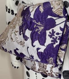 花柄 兵児帯 パープル系 光沢生地 フリル 浴衣用 へこ帯 銀色 やや光沢あり