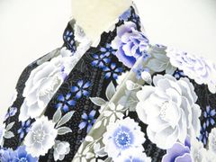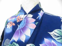 浴衣反物 紺色と白の花柄 綿100%