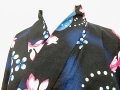 未仕立て綿浴衣 反物 黒赤地に花柄 呉服 着物 在庫品 リメイク