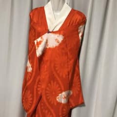 赤 長襦袢 和柄 アンティーク 正絹風 リメイク用 難あり