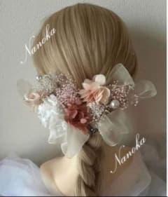 銀箔付♪ピンク×ホワイト髪飾り♪ドライフラワー♪成人式♪結婚式♪卒業式♪和玉