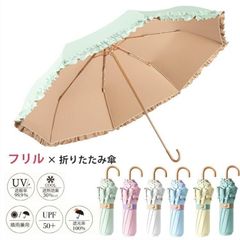 ブラウン 晴雨兼用長傘 フック型持ち手