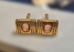 中古【 カフスボタン 】ゴールド べっ甲風 装飾