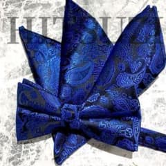 ◆蝶ネクタイ ポケットチーフ ブルー 青 新郎 小物 結婚式 挙式 Hrg