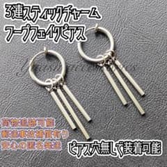 1ペア 3連スティック フープピアス バネタイプフェイクピアス