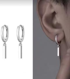 【メンズピアス両耳】シルバー フープイヤリング バー付き