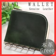 ミニ財布 L字ファスナー 極薄 スマート 本革 グリーン 緑色 キャッシュレス