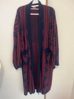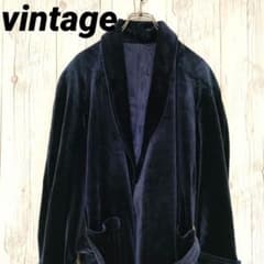ベロア バスローブ コート ネイビー 日本製 裏地総柄 上品♪ ビンテージ