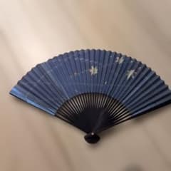 紅葉模様の紺色扇子 アンティーク