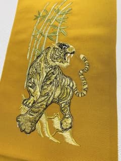 男性用 刺繍半衿 ポリエステル汐瀬 笹と虎