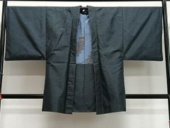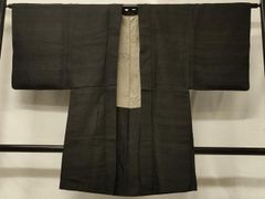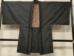 平和屋着物#男性 長羽織 紬地 黒地 正絹 逸品 CABE5548in