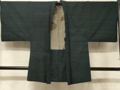平和屋着物∞男性 長羽織 紬地 高麗納戸色 正絹 逸品 CABE4872ua