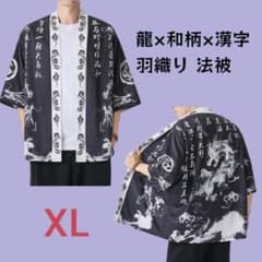 派手柄 龍柄 漢字柄 羽織り 法被 ハッピ 半被 祭り 和柄 美品XLサイズ