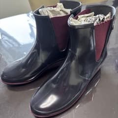 おしゃれ レインブーツ【24cm】黒 ラバー 長靴 バックル 美品 通勤・通学