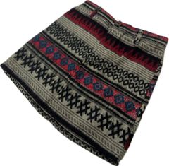 MALAIKA ☆ インド製 総柄 エスニック アクリル ニット スカート ミニ ベージュ レッド ネイビー フリー 秋冬 民族 古着 マライカ■JS1194