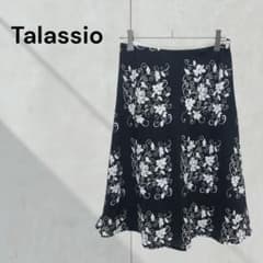 ◇東京スタイル フレアスカート ひざ丈 総柄 ホワイト ブラック 11 L