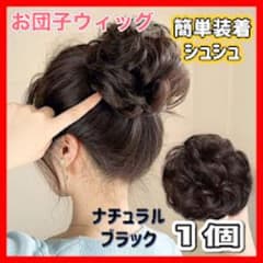 お団子ウィッグ ブラック シュシュ つけ毛 ストレート ヘアアクセサリー
