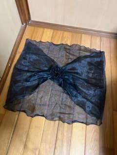 ブラックレースショール 約2m パール付き バラ柄