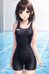 スポーツ用水着 Mサイズ ブラック/パープル キャップ付き