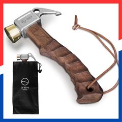 【人気商品】真鍮ヘッド(木(オイルステン)) 名栗加工 木製ハンドル キャンプ コンパクト 小型 軽量 ショートハンマー ペグハンマー Camps ZEN