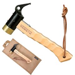 【YOGOTO】 ペグハンマー 安全 ベルト付 収納ケース付 (第2世代+防水帆布バッグ(キャメル色)) 1