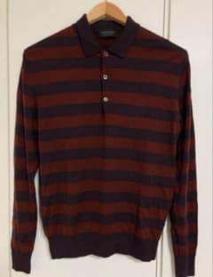 hifumiヒフミ ポロシャツ 長袖 L ボーダー 刺繍ワッペン レトロ メンズ