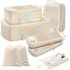 Samfolk トラベルポーチ 旅行用圧縮袋 旅行用ポーチ 圧縮バッグ セット 圧縮袋 旅行 パッキングポーチ 旅行便利グッズ 衣類仕分け 出張 大容量 防水 小物入れ トラベルセット 下着収納 巾着袋 スペース節約(ベージュメッシュ,8点)wb