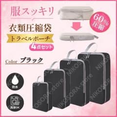 旅行用圧縮袋 4点セット トラベルポーチ 衣類 収納バッグ 撥水 ブラック