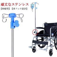 点滴スタンド 車椅子専用 IVスタンド 点滴棒 伸縮可能 軽い ステンレス製 横乗り車椅子用 高齢者 ホームケア 病院 クリニック 4つフック付き 組立簡単#bon2105