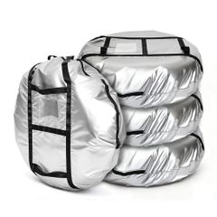 ZATOOTO タイヤカバー 防水 厚手500D 屋外 タイヤ保管 収納 厚手 ハンドル付き 劣化 UVカット タイヤ保管バグ 雨雪対応 耐久 タイヤキャリーバッグ 普通自動車 SUV 収納袋付き シルバー L 4枚セット LTZ13-L-4PCS★m