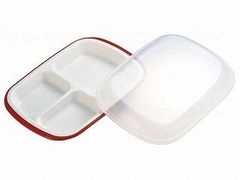 小森樹脂 フタ付ランチプレート(角)「楽弁」 朱 - 介護用品