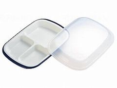 小森樹脂 フタ付ランチプレート(角)「楽弁」 紺 - 介護用品