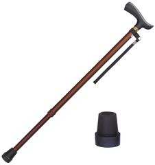 【ラスト1点】WB3901 (替えゴム付き) 杖 S・M兼用 伸縮式ステッキ ベーシック 対応身長140~185cm ブラウン ステッキ フジホーム