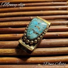 フェザー インディアン マネークリップ ターコイズ 真鍮 新品 ナバホ族 USA
