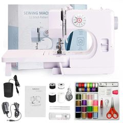 ミシン 初心者向け 電子ミシン 12種類の縫い目 返し縫い機能 2way給電 日常手作り縫製 42PCS裁縫セット付き スピード調整可能 持ち運び便利 日本語説明書付きKK