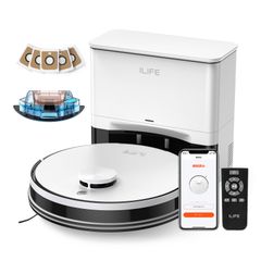 アイライフ(ILIFE) ロボット掃除機 高精度レーザー 自動ゴミ収集ステーション 2.5L大容量紙パック(5枚付き) 60日自動ゴミ収集 5000Pa強力吸引 水拭き両用 カーペットブースト お掃除ロボット 2in1 ダストボックス&ウォータータンク 予KK