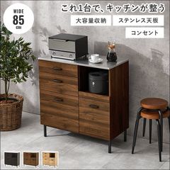 [幅85㎝] キッチンキャビネット キッチンカウンター レンジ台 ステンレス天板 2口コンセント付 大容量収納 耐熱 耐久性 8601