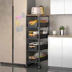 特価商品 高さ81cm 洗面所 キッチン 収納ラック キャスター付き 調味料棚 スリムワゴン ラック 隙間収納 洗濯機横 天板付き 冷蔵庫横収納 幅20/25/32cm ランドリーワゴン スライド式 棚 キッチンワゴン スリムラック SVOHZAV (ブラック