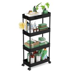 人気商品 18cm 22cm ペットボトルラック 13cm 冷蔵庫横 洗面所 キャスター付き 収納 隙間ラック 隙間収納 3段 4段 スリムワゴン キッチンワゴン 細い棚 調味料棚 SVOHZAV (13.5cm-[四段式] ブラック)