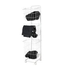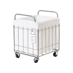 新品 003385 FOLDING LAUNDRY SQUARE BASKET with CASTER 40L WIDE (White) ランドリーバスケット 植物鉢カバー キャスター付き 収納