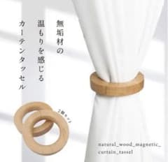 天然木 カーテン ホルダー タッセル マグネット式 2個セット ナチュラル