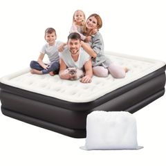 クイーン エアマットレス 自動膨張3分 キャンプ用 & ゲストベッド 耐久性 ポータブル エアベッド マットレス付き 折りたたみ 高耐久 エアソファ ブローアップベッド キングサイズ対応
