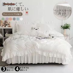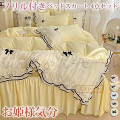 フリル付きベッドスカート 4点セット 寝具 洗える 布団カバー ベッドカバー シーツ 枕カバー リボン付き 切り替え 夏用 お姫様気分 可愛い