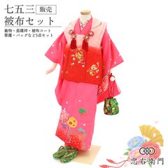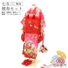 七五三 着物 3歳 女の子 被布セットショッキングピンク レトロ 伝統文様 蝶々 身丈94.5cm 裄丈41cm 三歳 三才 女児 被布コート 草履 巾着 付き キッズ 和装 お祝い 晴れ着