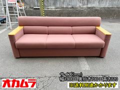 【中古】【一部地域送料無料】オカムラ 3人掛け 応接ソファ 布張り ピンク系 3Pソファ F-RA-221-0612A